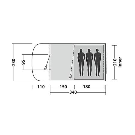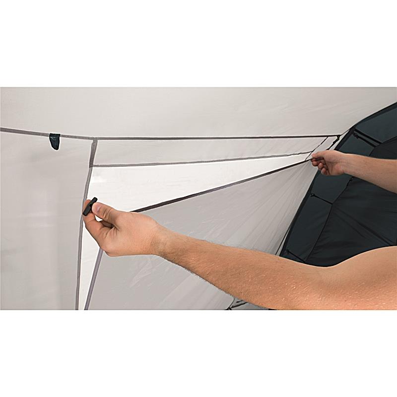 Idealen za majhno družino,v Palmdale 300 udobno spijo trije v veliki spalnici. Z barvno označenimi palicami iz steklenih vlaken in rokavi za palice boste hitro in enostavno postavili. Prišita podloga preprečuje prepih, medtem ko velika dvojna okna v bivalnem prostoru prepuščajo svetlobo. Globok nadstrešek nad vhodnimi vrati z mrežo proti žuželkam in okna nudijo dodatno zavetje za dostop, kuhanje in shranjevanje koles.