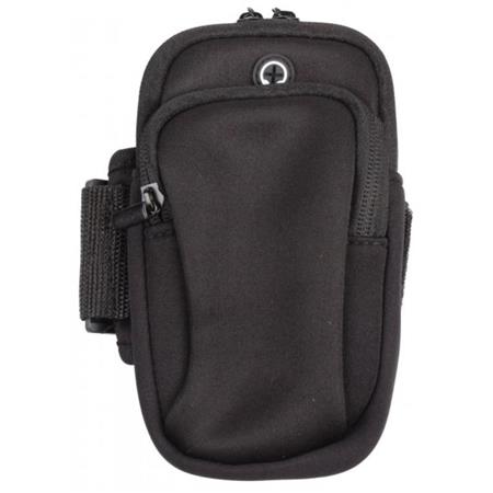 Športna torbica za telefon je vaš koristen pripomoček za shranjevanje potrebščin med športnimi aktivnostmi. Torbica ostane tesno na vaši roki, da bodo vaše stvari na varnem. Torbica dimenzij 15 x 9 cm je narejena iz lahke vodoodporne tkanine in je sestavljena iz dveh osnovnih predelkov. Večji je popolnoma primeren za shranjevanje pametnega telefona. Na voljo je povezovalni prehod, tako da lahko na pametni telefon priključite slušalke. Drugi predal je manjši, ta je primeren za vaše ključe ali nekaj denarja. Torbica ima nastavljiv elastični trak z ježki, primeren za različne velikosti roke.